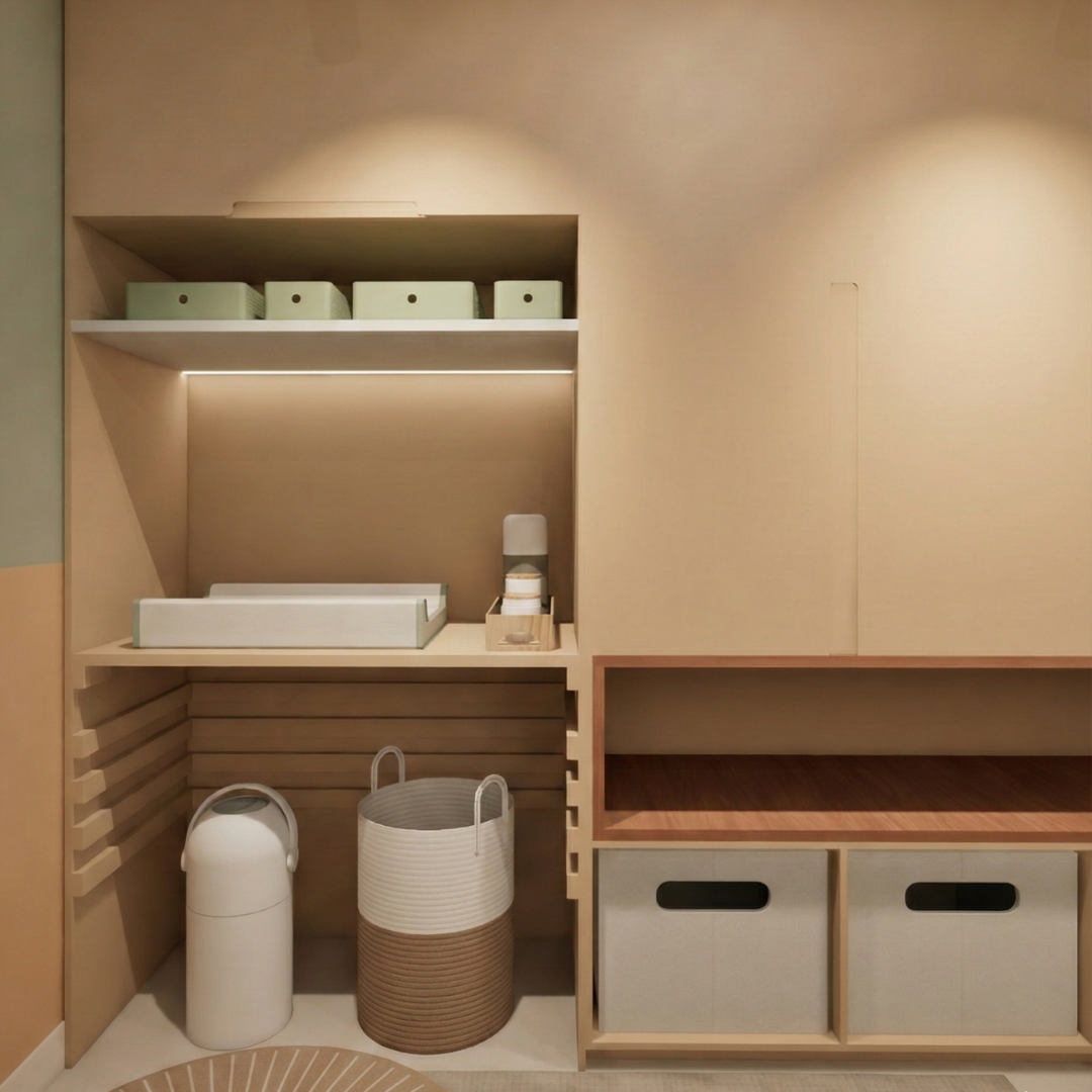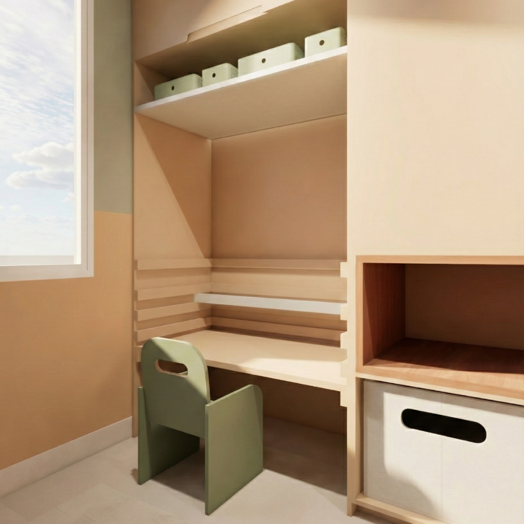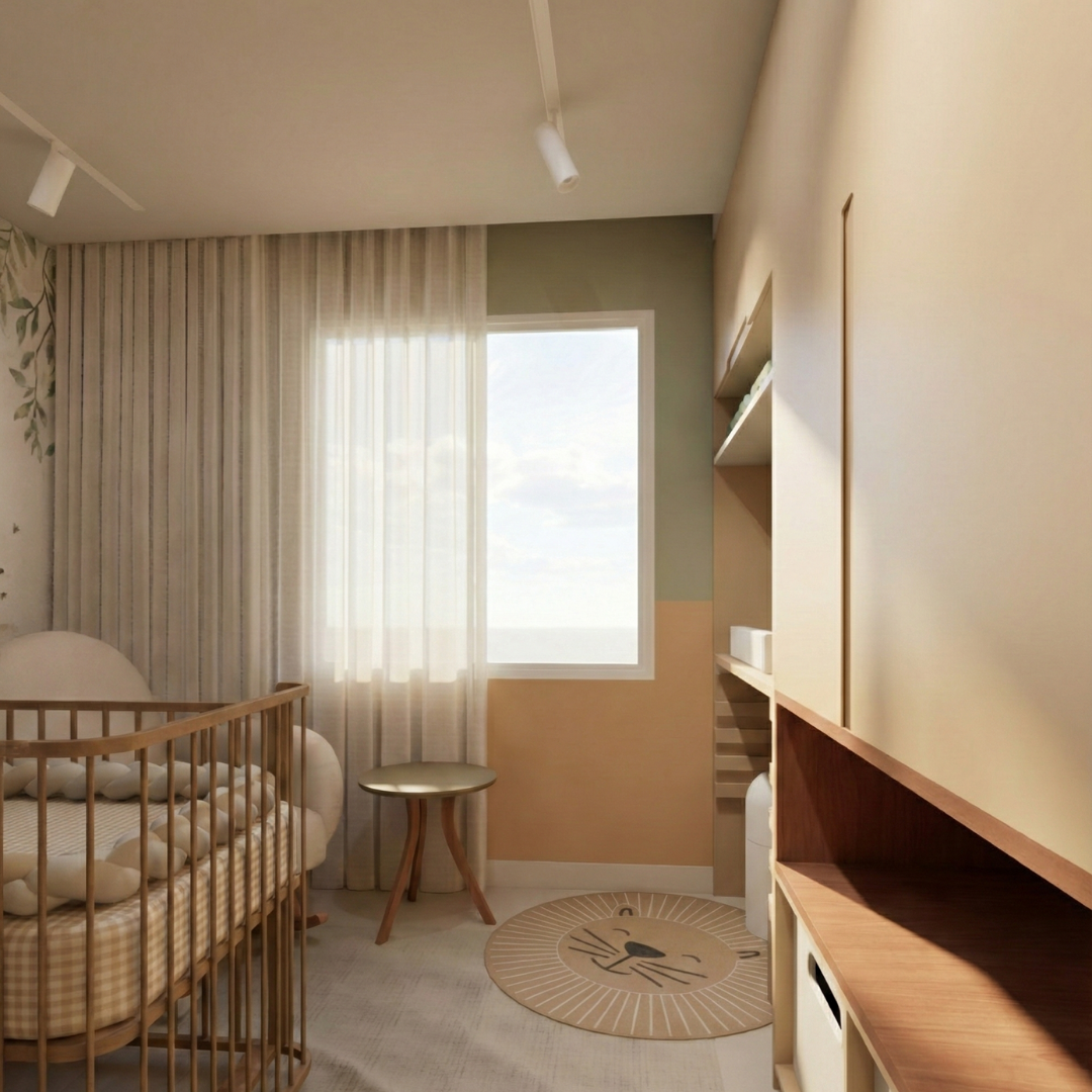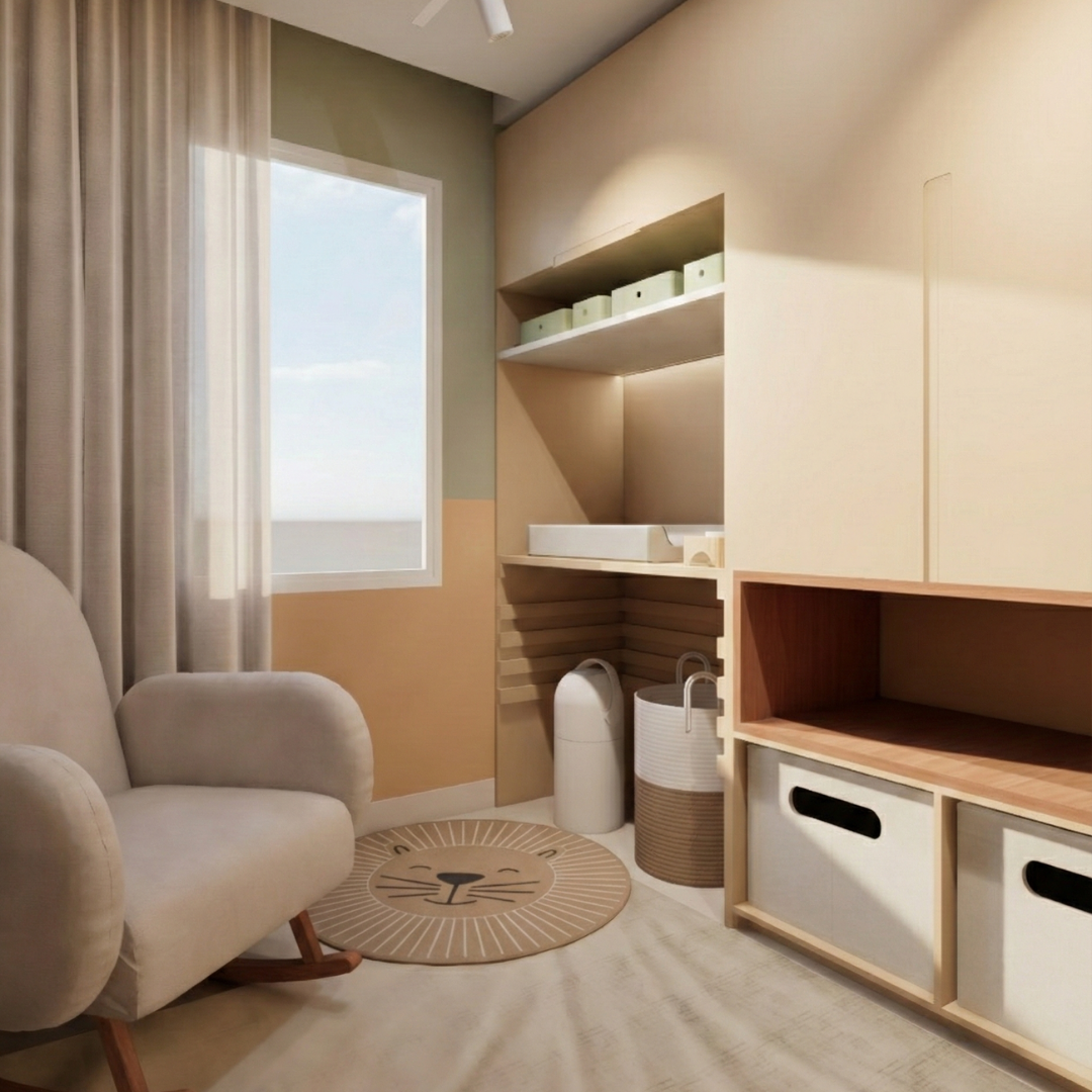 Ele organiza layout, escolhas de móveis e soluções práticas para que o quarto evolua com o tempo, mantendo conforto, funcionalidade e harmonia visual.